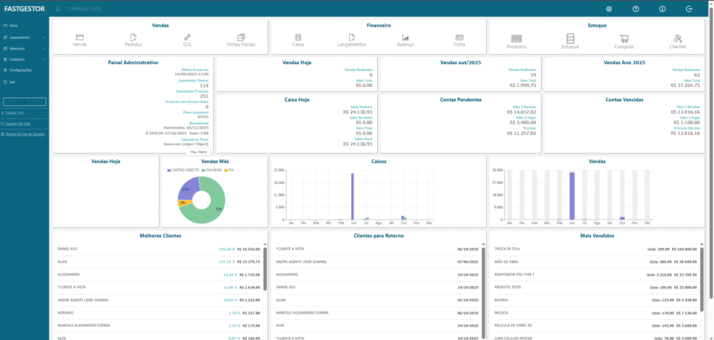 Gerencie o Caixa, acompanhe suas Contas a Pagar e Receber e mantenha o fluxo de caixa sob controle total. O FastGestor vai além: ele envia alertas automáticos de contas e realiza cobranças via E-mail e WhatsApp, garantindo que seus recebíveis entrem no prazo, sem esforço manual. Sua saúde financeira em dia, no computador ou no celular.